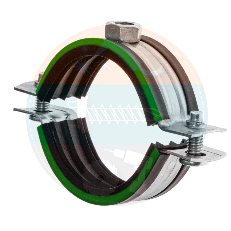 Хомут сантехнический д/труб 2" (60-65 мм) гайка М8 и уплотн. с зел. полосой Mayer ( 4 шт.)