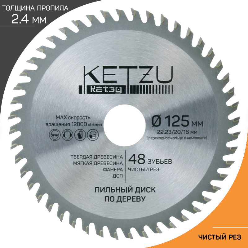 Диск пильный по дереву 125 ммх48зубх22.23/20/16 мм KETZU