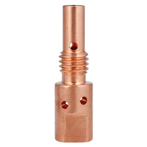 Вставка под наконечник является сменным элементом для горелки. Применяется для установки и надежной фиксации токосъемного наконечника в сопле. Отверстия на держателе предназначены для равномерного распределения защитного газа в сопле, тем самым держатель также выполняет функции диффузора во время сварки.